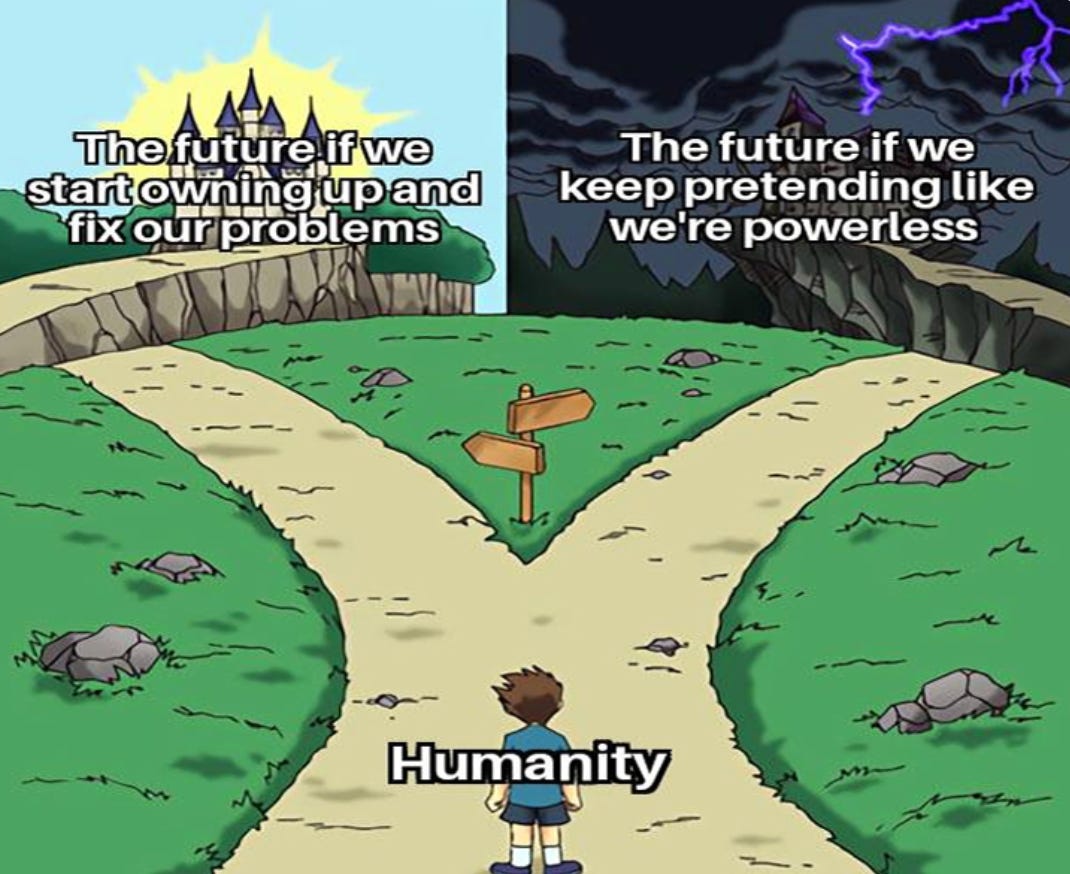 Yes, comedy and cynicism tend to go hand in hand. And internet memes are the main comedic currency of our times. That said, our future is far from certain. Which means it needs us, the creators of it, to dream big, and dream well. Which is hard for us to do when the TV & movie industries are hellbent on producing endless dystopian, apocalyptic fiction. If the world only imagines and consumes that kind of content, its far more likely to end up there.
